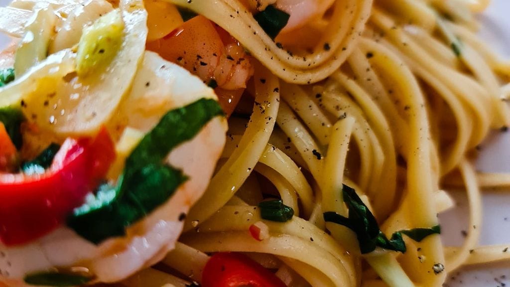 Harri Syrjäsen katkarapupasta valmistuu näin: