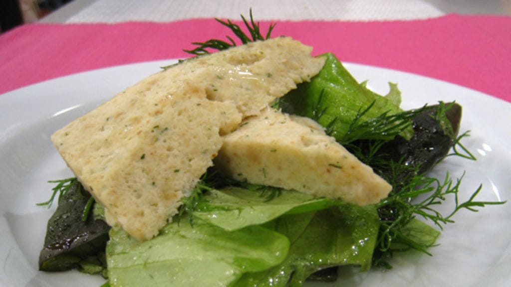 Levitä valmis murekemassa pitkulaiseen vuokaan ja kypsennä höyryuunissa puoli tuntia, kunnes kala on kypsää. Kumoa mureke ja tarjoa se kuumana tai kylmänä.