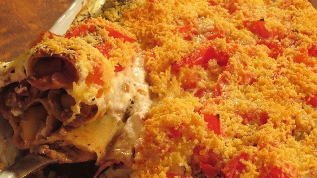 VINKKI: Mikäli haluat, voit jauhaa täytteen ihan hienoksi (monitoimikoneella tai sauvasekoittimen leikkuriterällä) ja pursottaa sen pursotinpussin avulla cannellonien sisään; pursotuksessa on hyvä olla toinen henkilö apuna.