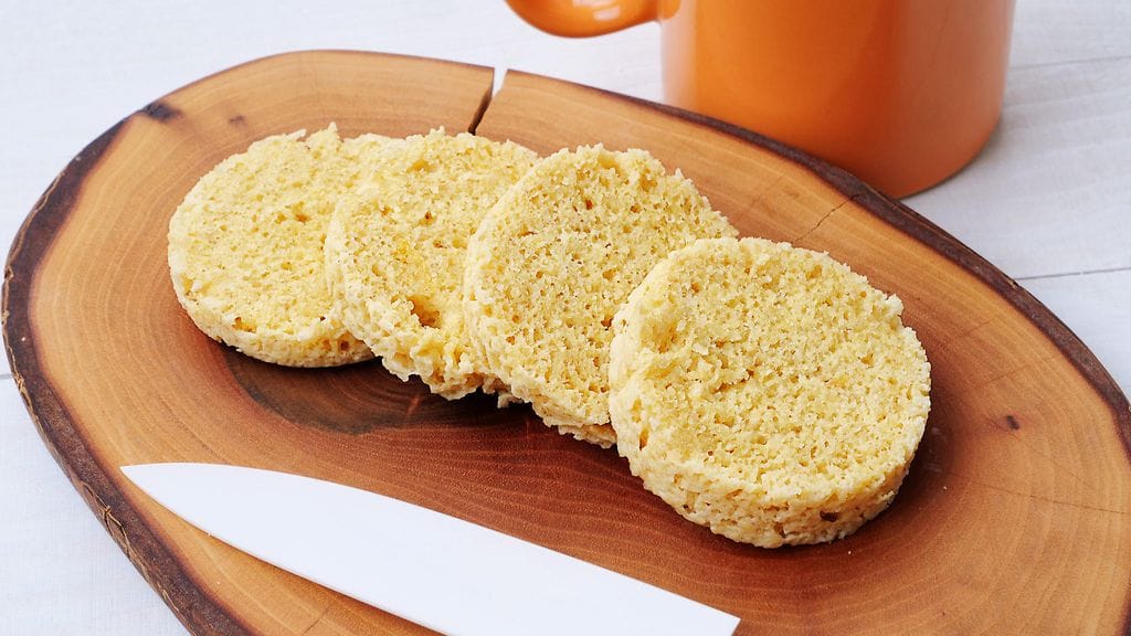 - Ota muki mikrosta ja kaada leipä varovasti sieltä ulos leikkuulaudalle. Leikkaa puoliksi, kuten sämpylä. Jos haluat paahtaa leivän, tee se pienessä määrässä öljyä pannulla. Älä laita leivänpaahtimeen.
