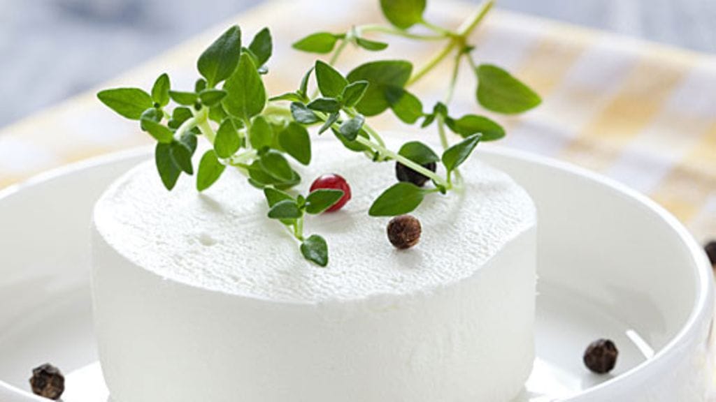 Asettele juusto lautasille salaatin päälle. Voit pirskotella marinadia myös salaattiin ja laittaa marinadin mangonpalat salaatin joukkoon. Pirskottele lopuksi granaattiomena-vehnäolutvinegretteä annoksen päälle ja tarjoa heti.