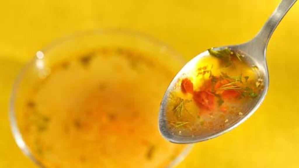 3. Paloittele broilerinliha ja silppua persilja. Kun keittoajasta on jäljellä 5 minuuttia, on aika lisätä herneet, broileri ja katkaravut. Ripottele padan pinnalle persiljasilppua.