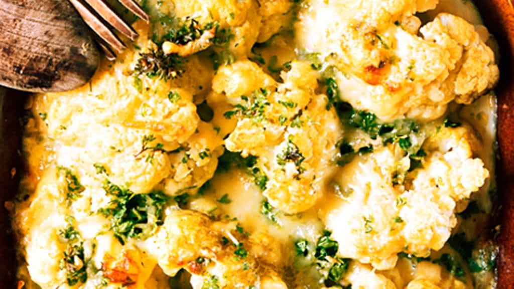 3. Ota kastike pois liedeltä. Sekoita joukkoon juustoraaste ja kaada se kukkakaalin päälle. Gratinoi n. 10-15 minuuttia. Ripottele pinnalle persiljaa.