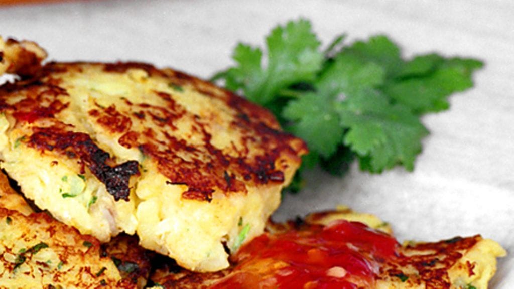 2. Kuumenna pannulla öljyseos, jossa on 1/3 seesamöljyä ja 2/3 maissiöljyä. Muotoile pieniä, litteitä pyöryköitä ja paista niitä minuutti kummaltakin puolelta, tai kunnes ne ovat kullanruskeita. Tarjoile keitetyn jasmiiniriisin kanssa.´