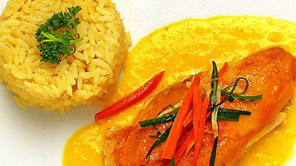1. Kastike: Sulata 2 rkl voita kattilassa. Ota kattila liedeltä ja vatkaa mukaan jauhot. Laita sivuun. Anna 1 rkl voita paistua hieman toisessa kattilassa. Lisää curry ja sekoita, lisää liemi ja kerma. Vatkaa ja anna kiehua hiljalleen muutama minuutti. Lisää jauhosuurus vähän kerrallaan samalla vatkaten ja anna kastikkeen kiehua hiljalleen 5 minuuttia, siivilöi. Mausta suolalla ja pidä lämpimänä tarjoiluun saakka.