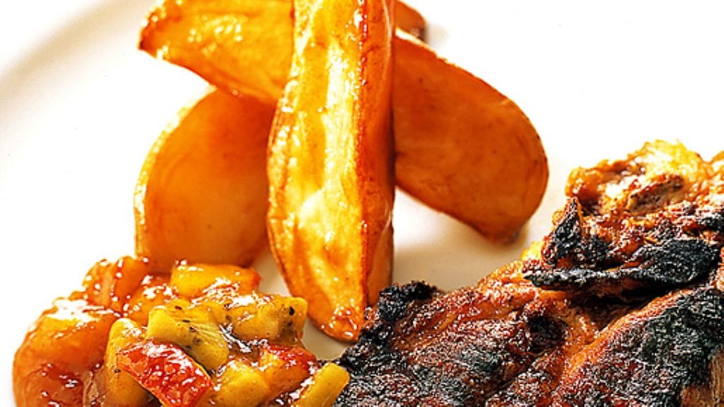 3. Chutney: Kuori ja hienonna sipuli ja hienonna omena. Kuullota omenaa ja sipulia öljyssä muutaman minuutin. Lisää curry. Kuutioi kiivi ja lisää se ja rusinat. Tarjoa lämpimänä tai kylmänä.