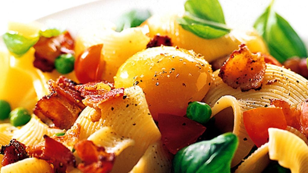 Kaada aineksien sekaan reilu loraus valkoviiniä, jonka jälkeen lisää keitetty pasta. Freesaa aineksia niin, että aromit avautuvat ja ainekset sekoittuvat.