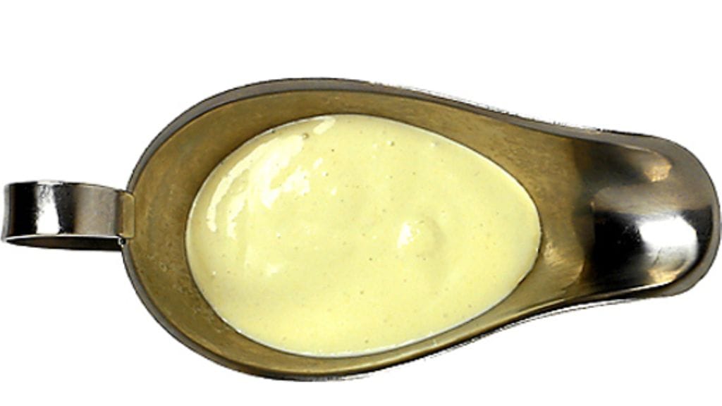 1. Muussaa sinihomejuusto haarukalla. Sekoita juusto, majoneesi, kermaviili, sinappi ja viinietikka tasaiseksi kastikkeeksi. Laita kylmään tarjoiluun asti.