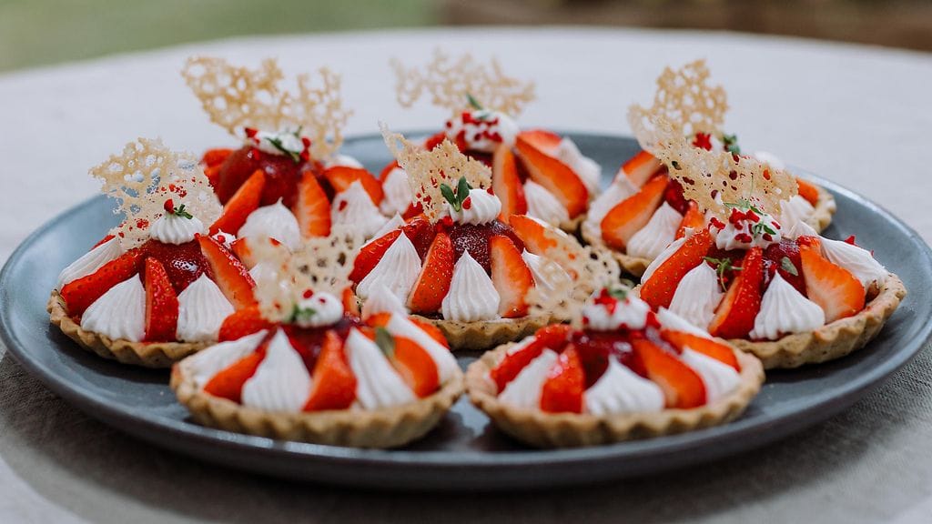 TARTALETTIPOHJAT: Valmista taikina sekoittamalla kuivat aineet keskenään, nypi joukkoon kylmä margariini ja lopuksi, lisää mantelimaito. Taikina on tahmeaa, joten lisää vehnäjauhoa sen verran, että taikina irtoaa sormista. Käsittele taikinaa mahdollisimman vähän ja nopeasti, kun painelet sen tartalettivuokiin. Painele tartaletit vuokiinsa ja vie ne kylmään. Anna levätä n.10-15min. Paista 175 asteisessa uunissa, alatasolla 12-15min. Paiston jälkeen irrota vuoista heti.