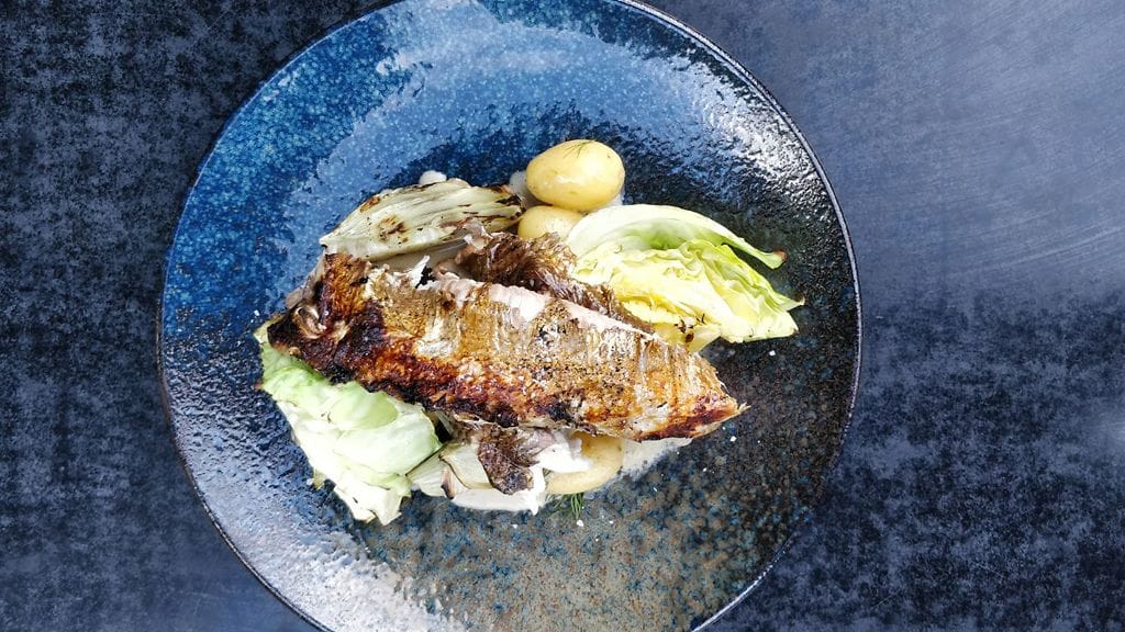 Grillauksen aikana voit valella lisää ruskavoi-sitruunaseosta kalojen pintaan.