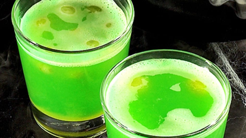 2. Sekoita mehut ja limu, lisää varoen elintarvikeväriä kunnes booli on räväkänvihreä.