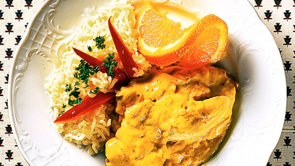 2. Currykastike: Kuori ja hienonna sipuli ja kuullota se öljyssä. Lisää curry ja paista sekoittaen minuutin ajan. Raasta omena karkeaksi raasteeksi. Lisää omenaraaste ja ananasmurska curryyn. Vatkaa maito, Maizena ja kasvisliemi kattilassa ja kiehauta. Kaada neste curryseokseen, lisää mausteet ja anna kiehua hiljalleen muutaman minuutin.