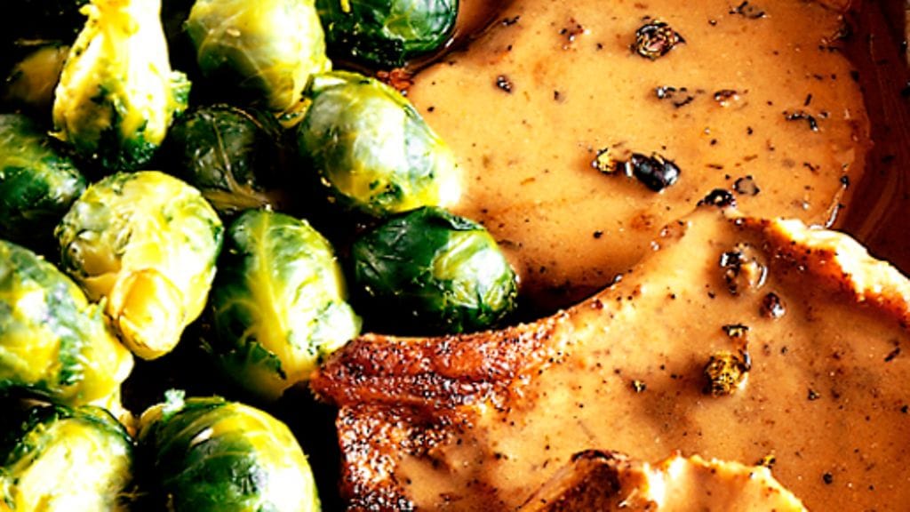 3 Lisää katajanmarjamurske sekä timjami ja mausta suolalla, pippurilla ja hyytelöllä. Sekoita viimeiseksi joukkoon ranskankerma. Tarjoile kastike kyljysten kanssa ja lisänä ruusukaalia.