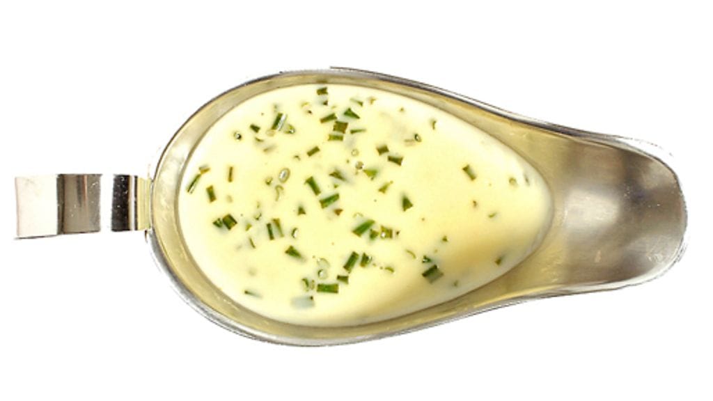 2. Sekoita maissitärkkelys tilkkaan kylmää valkoviiniä ja suurusta kastike. Kuumenna, mutta älä anna enää kiehua. Mausta suolalla ja pippurilla. Lisää voi nokare kerrallaan juuri ennen tarjoilua. Lisää ruohosipuli viimeiseksi.