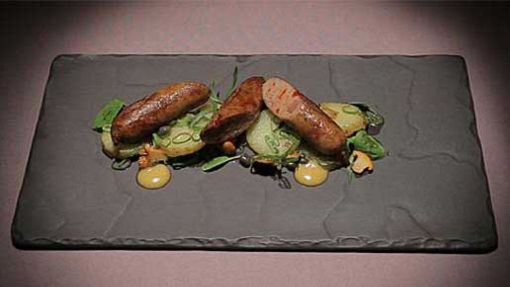 Lisuke: Paista sienet voissa. Valmista vinegrettekastike ja lisää siihen kaprikset. Paista perunoita hieman kantarellien kanssa. Mausta kaprisvinegretellä. Koristeeksi tuoretta rakuunaa ja viininsuolaheinää.