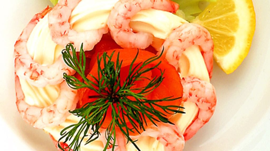 2. Reunusta leivät majoneesilla ja katkaravuilla.