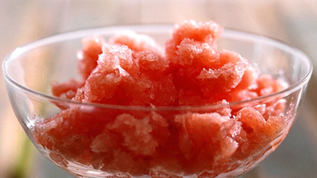 3. Raaputa granité vuoasta haarukalla ja tarjoile kylmistä laseista heti.