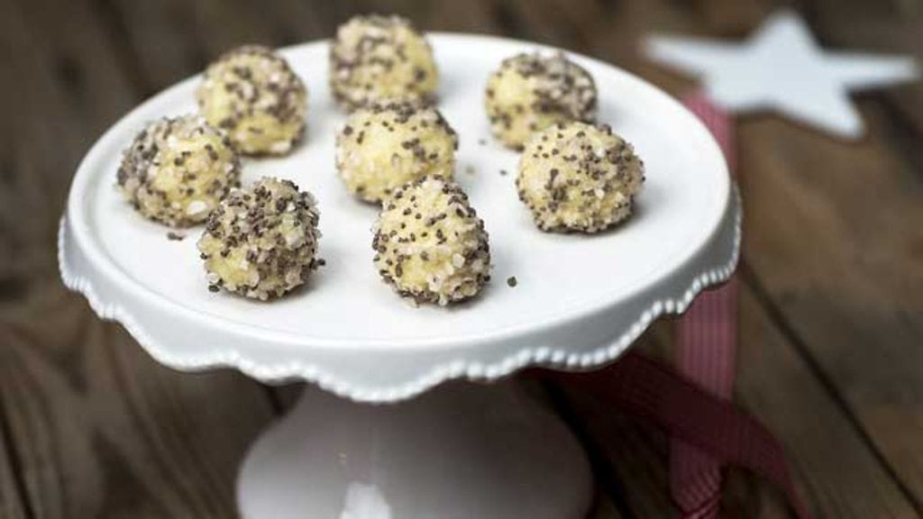 Pyörittele jähmettynyt seos pieniksi palloiksi ja pyöritä Marianne-murskassa.
