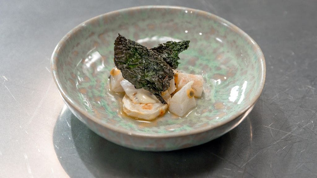 MERIBASSI-MARACUJACEVICHE: Leikkaa meribassi kuutioiksi. Sekoita aineet kulhossa ja anna maustua hetki.