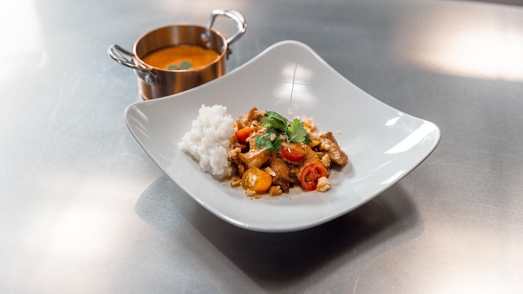 Anna hautua hetken ja lisää osa satsiviatahnasta. Sekoita ja tarkista maku. Lisää tarvittaessa tahnaa.