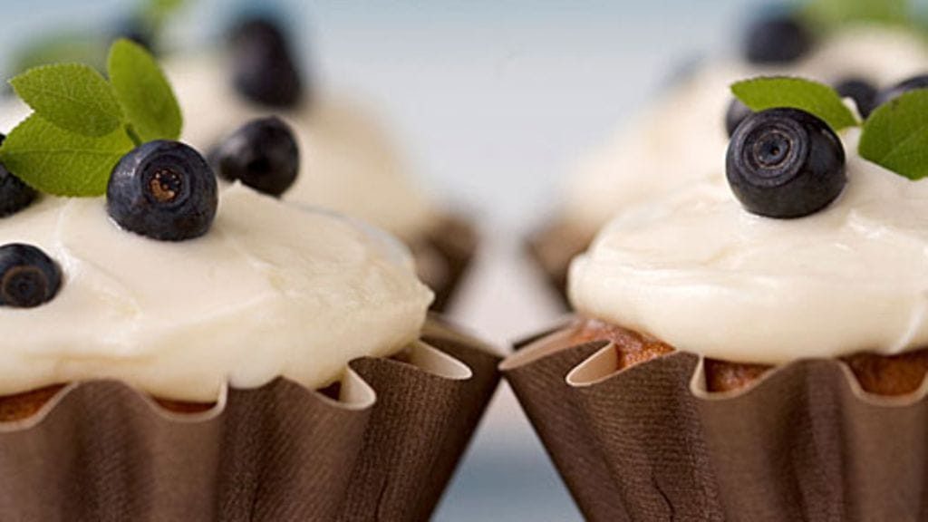 Paista 200-asteisen uunin keskitasolla 15–20 minuuttia muffinien koosta riippuen. Valmista kuorrutus. Vaahdota valkuainen ja sekoita siihen huoneenlämpöinen tuorejuusto.
