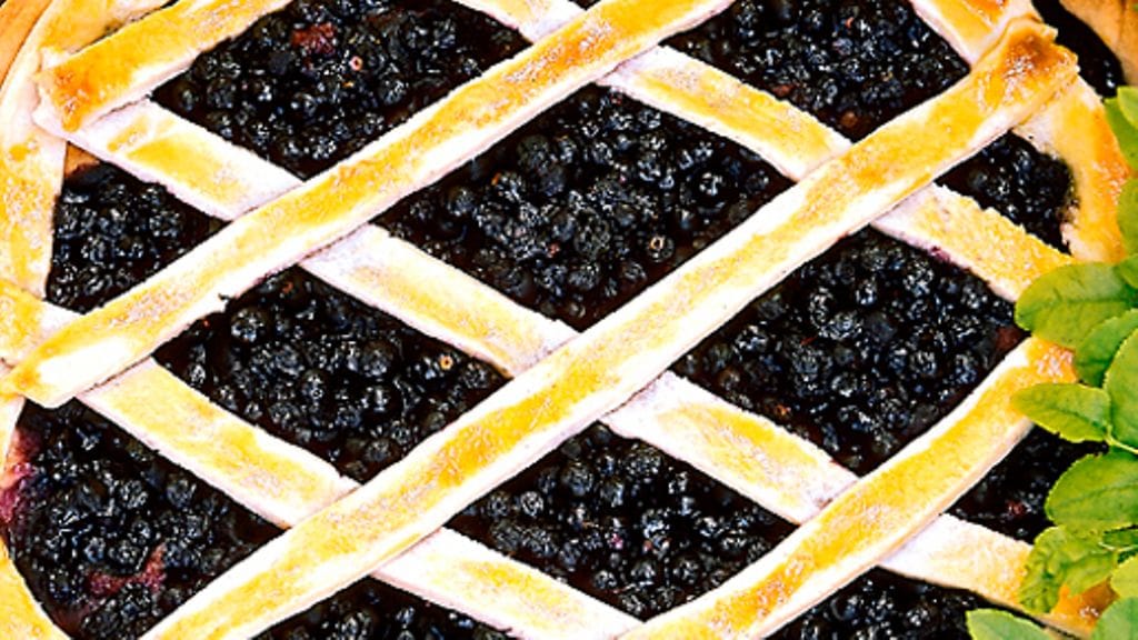 3. Levitä marjat piirakkapohjalle. Sekoita sokeri ja perunajauhot ja ripottele marjoille. Ota taikinasta suikaleita taikinapyörällä ja asettele marjojen päälle verkoksi. Penslaa munalla ja paista valmiiksi uunissa, n. 10 minuuttia.