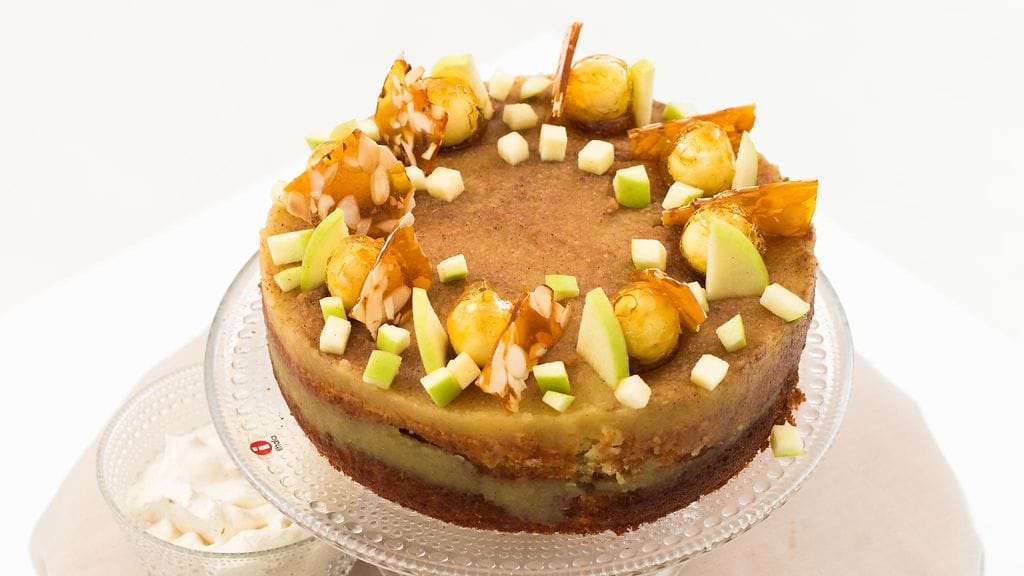 Koko Suomi leipoo -ohjelman kolmannen kauden viidennessä jaksossa loihdittiin ihania omenaherkkuja. Tässä Jaanan lapsuudesta inspiraationsa saanut omenakakku.
