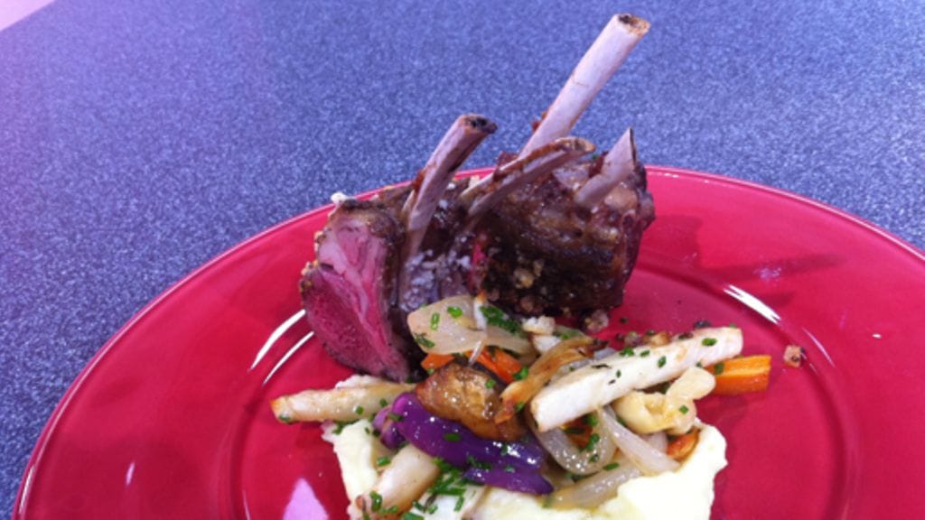 Nosta kare uunipellille ja sipaise ohut kerros sinappia lihan päälle. Ripottele leipärouhetta sinapin päälle ja loppukypsennä 185-asteisessa uunissa noin 5-6 minuuttia.