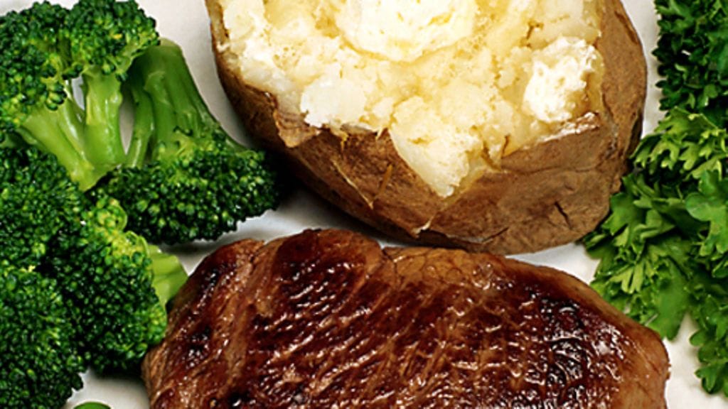 3. Murra parsakaali kimpuiksi, keitä vettä ja hieman suolaa kattilassa ja keitä parsakaali pehmeäksi vedessä. Poimi persilja varsistaan, tarjoile parsakaali ja persilja lihan ja perunoiden kera. Laita joka perunaan nokare voita.