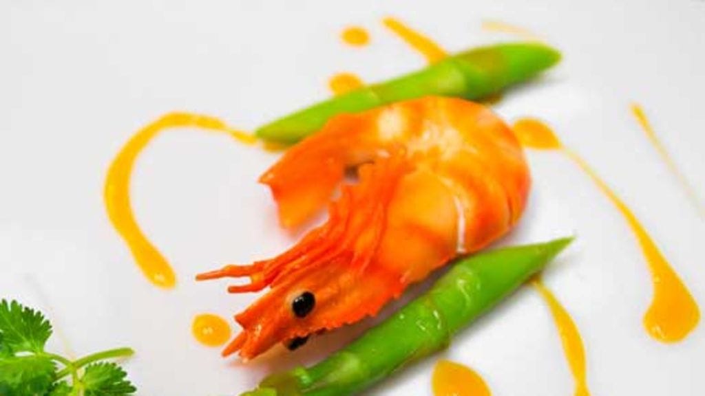 2. Sekoita suola, pippuri ja viinietikka vinaigrettekastikkeeksi, vatkaa mukaan sinappi ja öljy. Sekoita vihannekset, katkaravut ja vinaigrette.