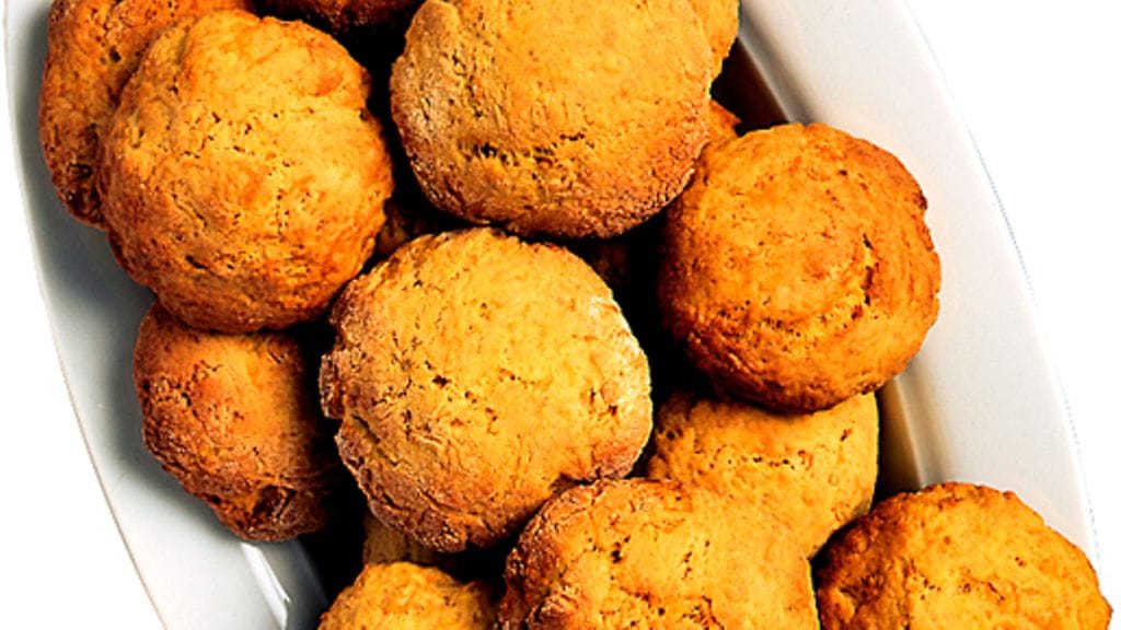 3. Päällystä uunipelti leivinpaperilla. Nosta taikinasta leivinpaperilla teelusikalla saksanpähkinän kokoisia nokareita ja tasoita niitä hieman. Paista kakkusia uunissa 15-20 minuuttia, kunnes ne ovat vaaleanruskeita. Jäähdytä hetki pellillä ja nosta sitten ritilälle.