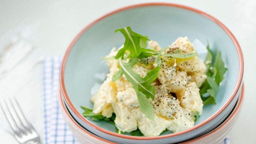 Keitä perunat kuorineen suolalla maustetussa kiehuvassa vedessä, kunnes ovat kypsiä.