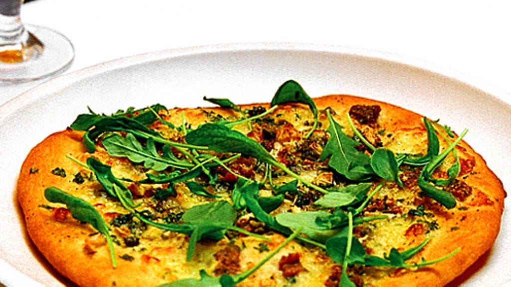 1. Taikina: liuota hiiva neljännekseen kädenlämpöisestä vedestä. Lisää 2 rkl jauhoa ja sekoita tasaiseksi. Anna nousta leivinliinan alla 30 minuuttia. Muotoile työlaudalle 6 dl:sta (loput jäävät leivontaan) jauhoja keko, jonka keskellä on mahdollisimman syvä kraateri. Kaada alkutaikina, suola ja loput vedestä syvennykseen. Työstä ainekset yhteen hyvin jauhotetuilla käsillä ja vaivaa taikinaa kunnolla ainakin 10 minuuttia. Jaa taikina neljään yhtä suureen osaan, pyöritä ne palloiksi ja anna nousta leivinliinan alla noin kaksi tuntia.