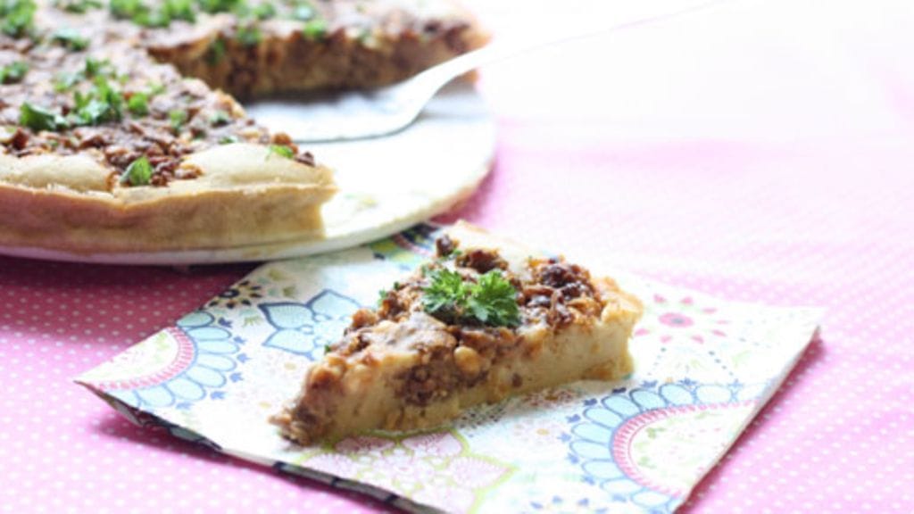 Levitä täyte pohjan päälle ja paista 200 asteessa uunissa noin 30 minuuttia.