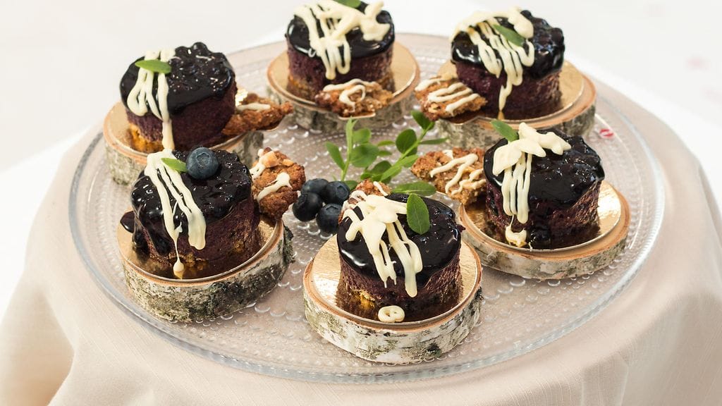 Valmista kakkupohja. Vatkaa munista ja sokerista vaahto. Sekoita kuivat aineet keskenään ja lisä vaahdon sekaan varovasti käännellen. Levitä taikina pellille. Paista 200 asteessa 6-8 minuuttia.