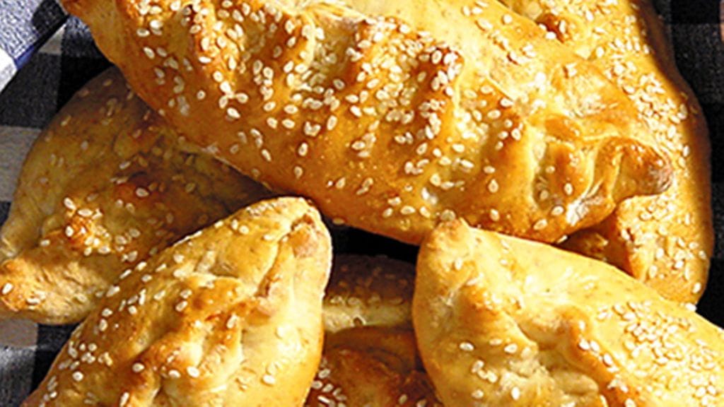 1. Taikina: lämmitä maito kädenlämpöiseksi. Liuota siihen murusteltu hiiva, lisää öljy ja suola. Sekoita jauhot nesteeseen ja vaivaa voimakkaasti sileäksi taikinaksi 5 minuuttia koneella tai 10 minuuttia käsin. Kohota taikina leivinliinan alla lähes kaksinkertaiseksi, noin 40 minuuttia.