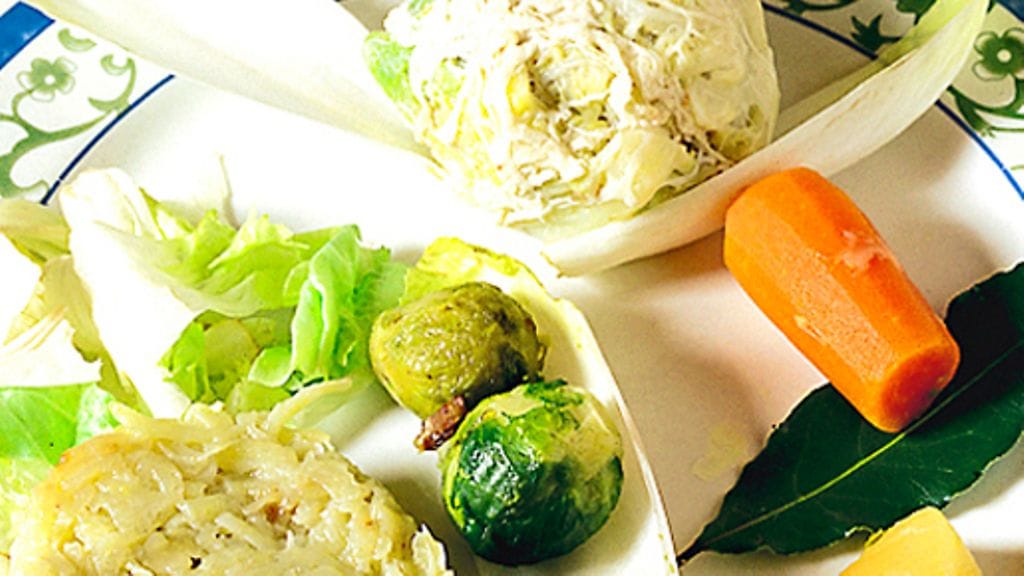 3. Päivä 2: Suikaloi sianlihamakkara. Ryöppää savoijinkaalin lehdet kevyesti suolatussa vedessä. Jäähdytä ne heti jääkylmässä vedessä ja valuta. Laita lehdet kaksi ja kaksi, jaa lehdille täytettä ja makkarasuikaleita, kääri paketeiksi ja paista paketit hanhenrasvassa. Tarjoile höyryävän kuumina keitettyjen juuresten kera.