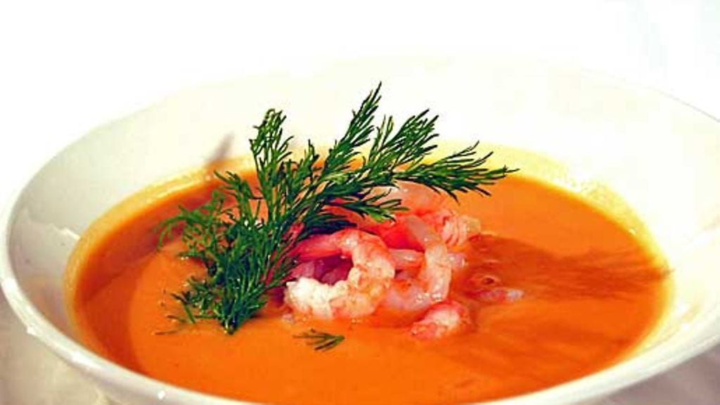 Siivilöi keitto, lisää kerma ja anna keiton saostua hetken aikaa hiljaa kiehuen. Halutessasi voit suurustaa keiton jolloin se on täyteläisempää. Tarkista maku ja lisää juuri ennen tarjoilua katkaravut.