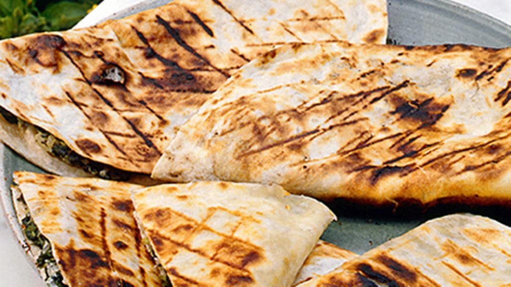 1. Laita puolet tortilloista leikkuulaudalle. Lado päälle pinaatinlehdet. Mausta ja laita päälle ricottajuustoa.