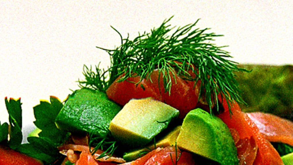 1. Leikkaa tomaatit lohkoiksi ja avokado kuutioiksi. Suikaloi lohi ja sekoita se avokadokuutioiden joukkoon.