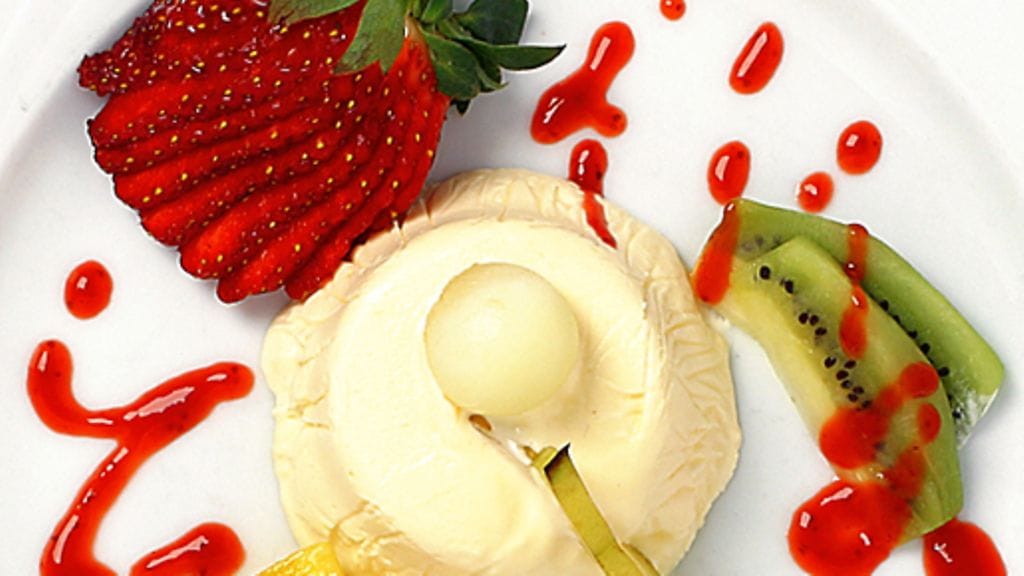 2. Kaada massa annosvuokiin, peitä foliolla ja anna jäätyä pakastimessa vähintään 5 tuntia. Ennen tarjoilua vuokien on seistävä huoneenlämmössä n. 30 minuuttia. Kasta vuoat nopeasti kuumaan veteen ja kumoa jäädykkeet.