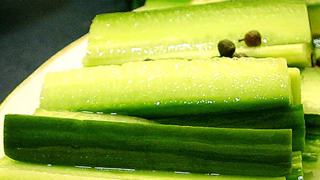 3. Laita kurkku tarjoiluvadille, kaada liemi päälle.