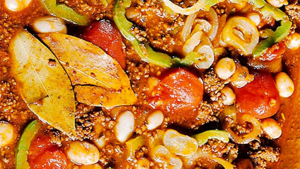 2. Lisää pataan kaikki muut ainekset, paitsi pavut ja keitä pataa hiljaa miedolla lämmöllä 45 minuuttia.