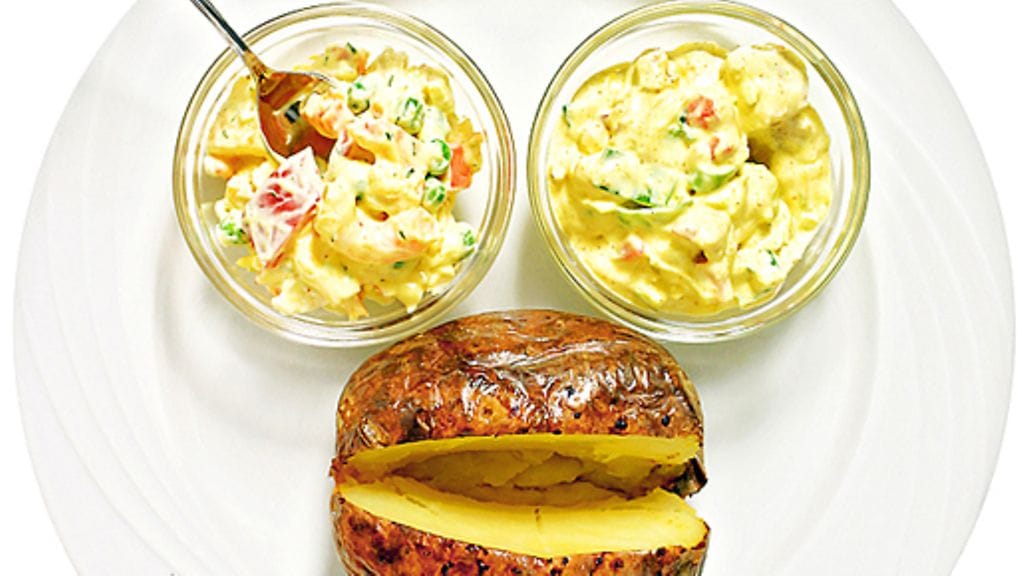 Uuniperunat: Esilämmitä uuni 225 asteeseen. Valitse uuniperunoiksi suurikokoisia perunoita. Kaikkein parhaita ovat Rosamunda-perunat. Pese ja kuivaa perunat ja voitele ne oliiviöljyllä. Pistele perunat haarukalla tai perunatikulla, pane ne unipellille ja kypsennä 50-60 minuuttia koon mukaan. Tarkista kypsyys perunatikulla. Perunat saavat olla mieluummin hieman liian kypsiä kuin liian kovia. Leikkaa ennen tarjoilua perunoiden kylkeen ristikkäinen viilto ja purista perunaa päistä niin, että viilto avautuu.