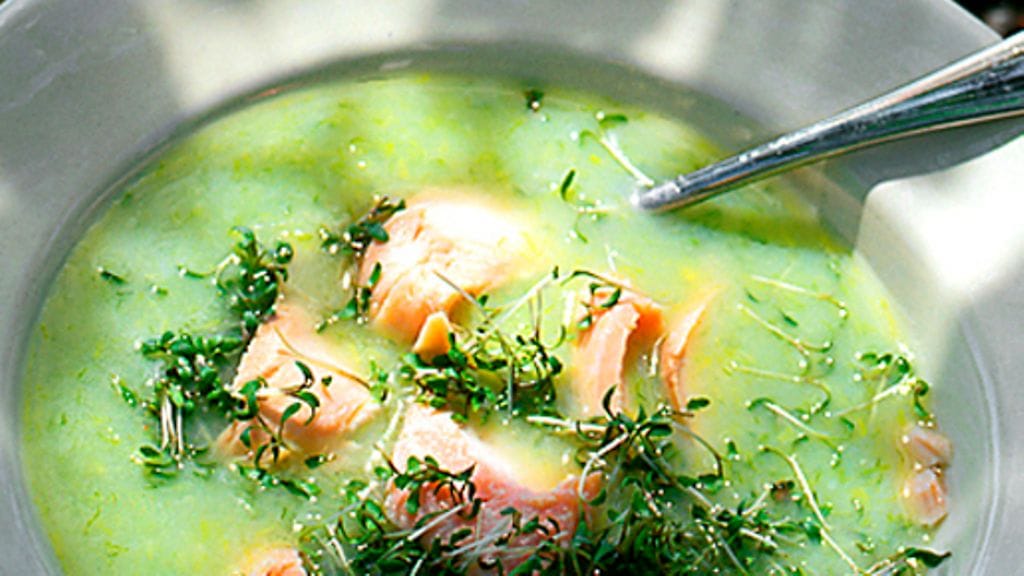 3. Kaada takaisin muun liemen joukkoon ja kuumenna uudelleen. Laita sekaan kalapalat ja keitä hiljaa 3 minuuttia. Koristele krassilla ja tarjoile leivän kanssa.