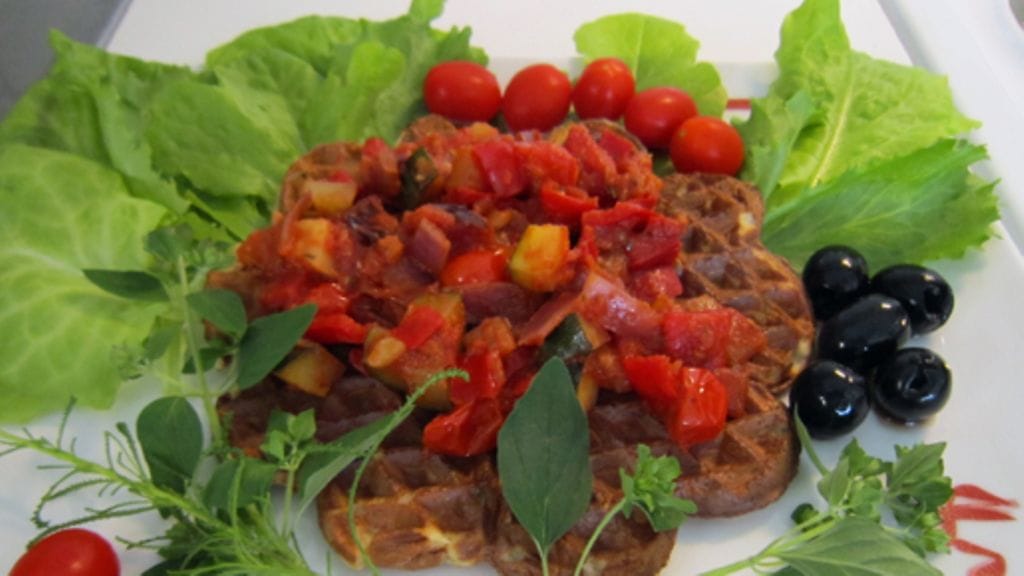 Kuullota paistinpannussa tilkassa öljyä kuutioitu punasipuli ja valkosipuli silputtuna miedolla lämmöllä. Lisää kuutioidut kesäkurpitsa, suippopaprika ja chili ja hauduta hetken aikaa. Lisää tomaattimurska ja ripaus mustapippuria, hauduta miedolla lämmöllä hetken aikaa. Lisää tomaatit kuutioituina ja anna pehmetä